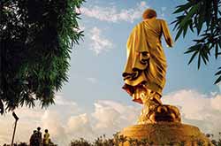 兩千五百年前佛陀率僧團等四眾弟子托缽說法,兩千五百年後在印度中部龍城景況重現。這兒是為印度獨立草擬憲法的安貝卡曾領五十萬賤民集體皈依佛教所在,佛寺被毀、佛教被納入印度教的千年後,佛教重生,這樣的行腳在這個結夏安居的月圓日,又再踩上農村每一條巷弄道路,受居民供養,一路畫著法輪撒上鮮花。