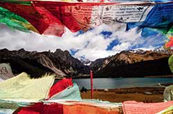 佛教傳入藏地,與當地原始宗教習合,發展出「風馬旗」經幡。神祕的高原上,從早期自然崇拜的苯教傳統,逐漸融入印度佛教精髓。